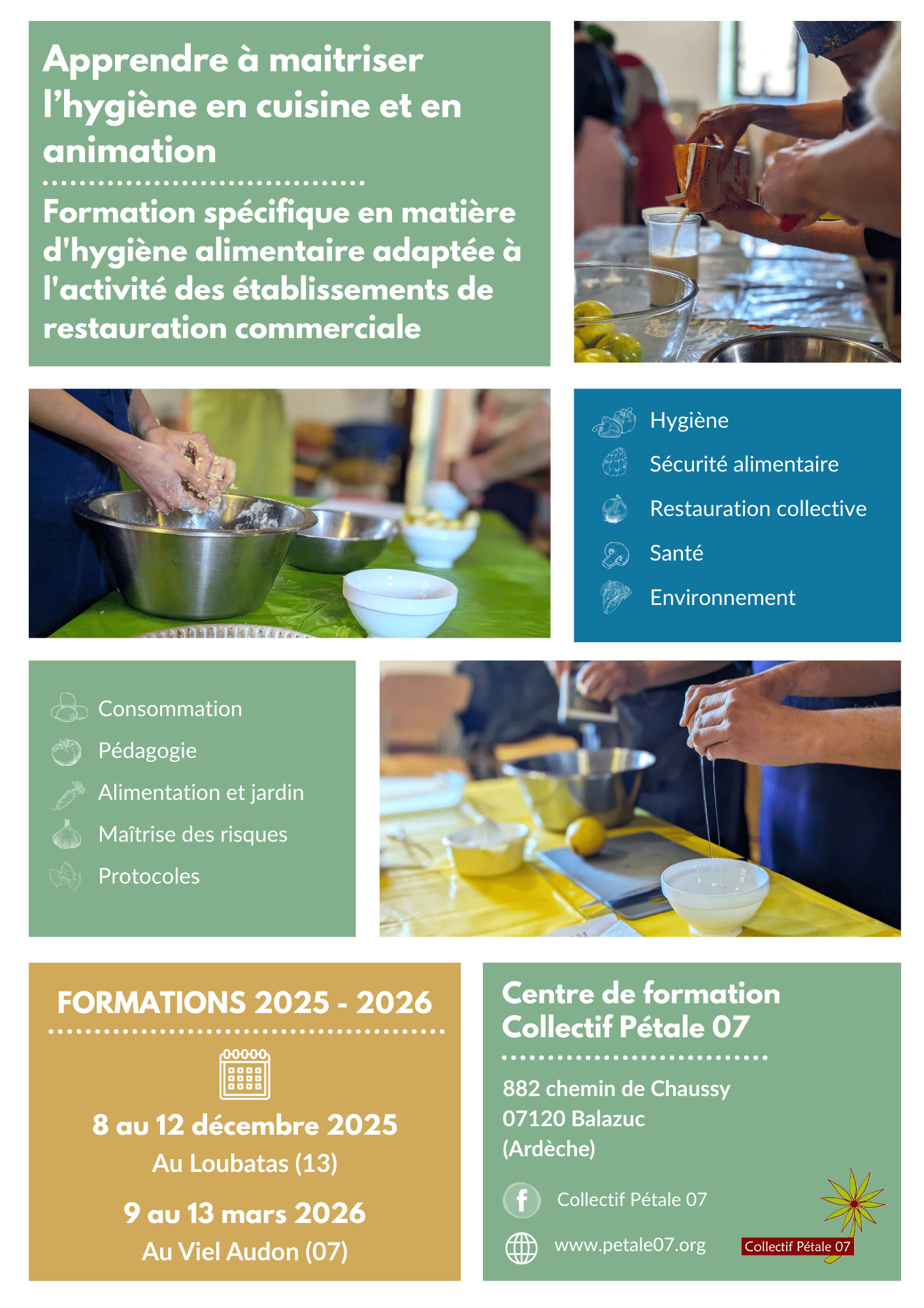 Formation spécifique en matière d’hygiène alimentaire adaptée à l’activité des établissements de restauration commerciale, aux cuisines « hors les murs » et aux ateliers d’animation où l’on mange ce que l’on a préparé.